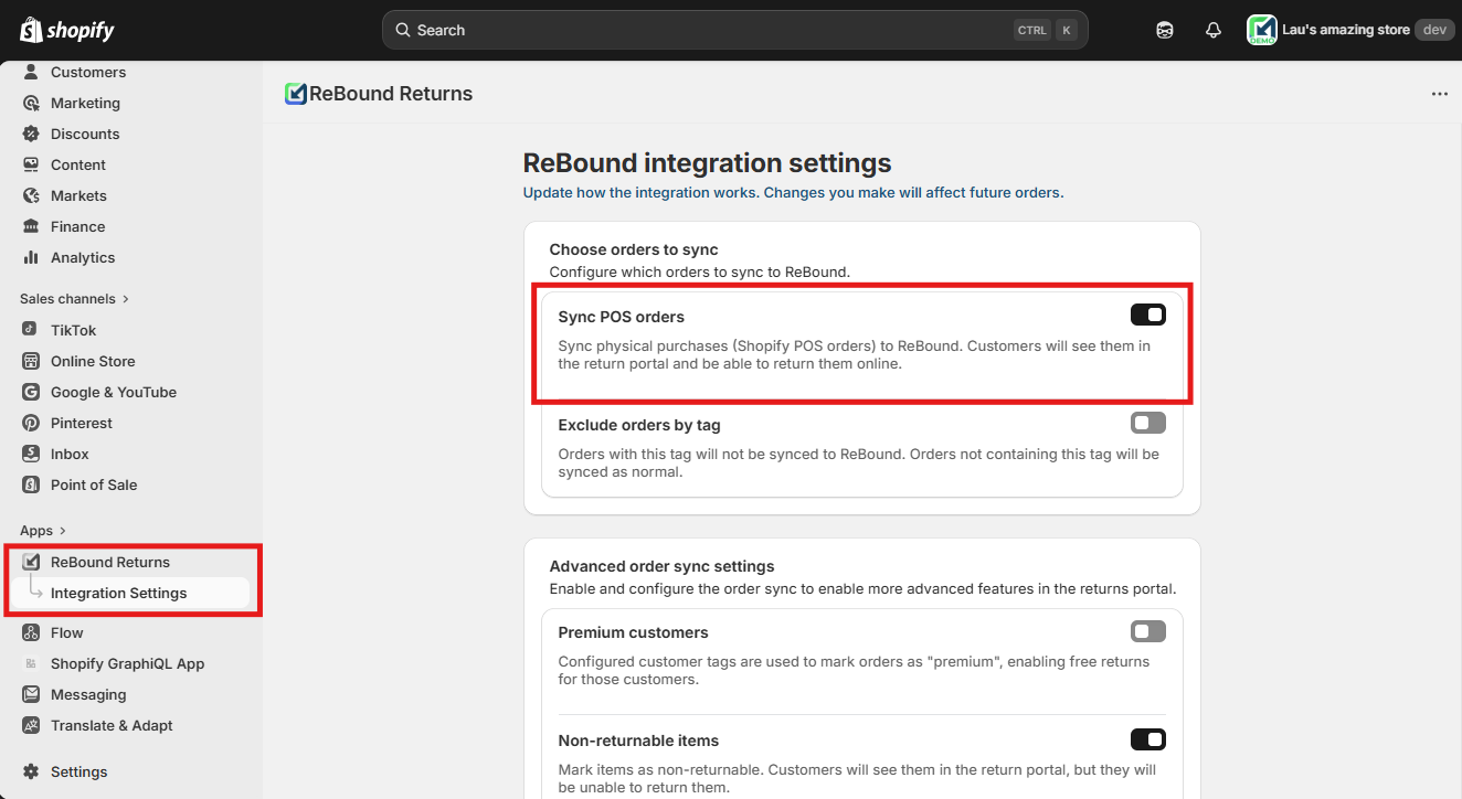 - If you want physical purchases from your store to be returnable online in the ReBound portal (buy online return in store). These orders must have been created via Shopify POS.