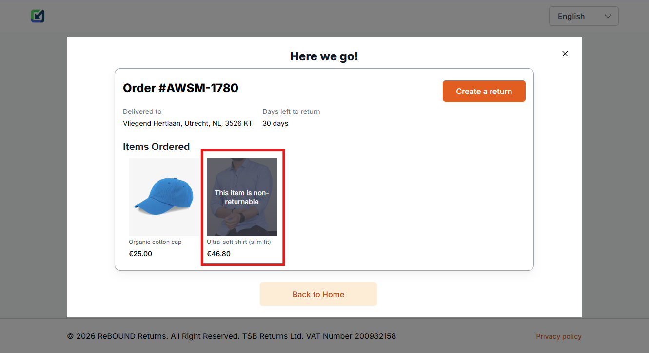 When syncing orders to ReBound, our Shopify integration can set specific items to non-returnable. This disallows customers from returning them in the ReBound portal.