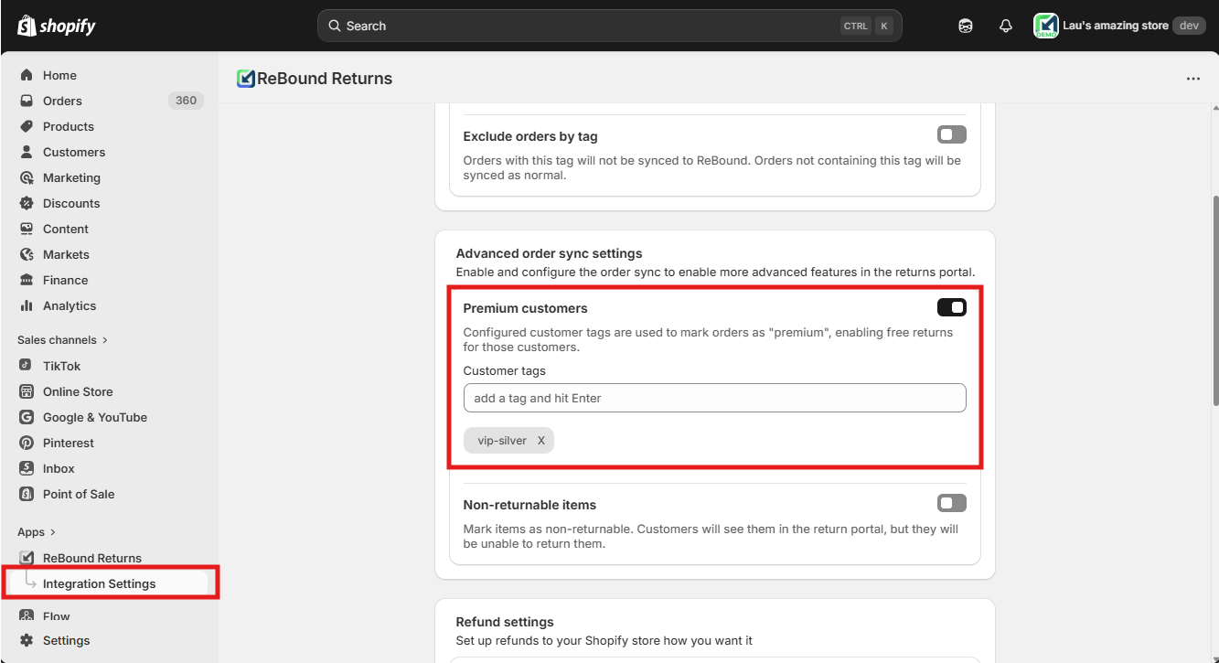 You can enable this feature and configure the corresponding customer tags on the "Integration Settings" page in the ReBound Returns app.